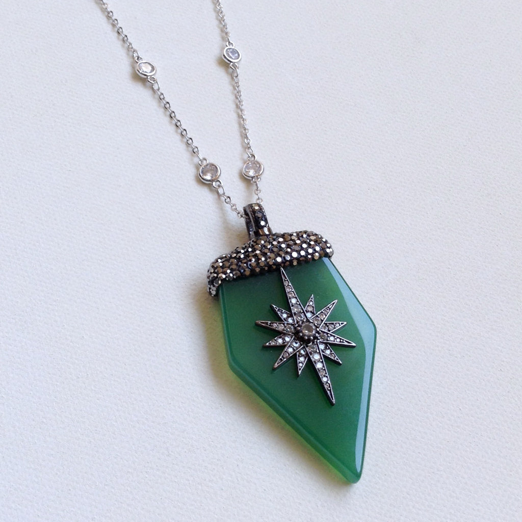 Blue Quartz Point on Blue Onyx Necklace $118.00