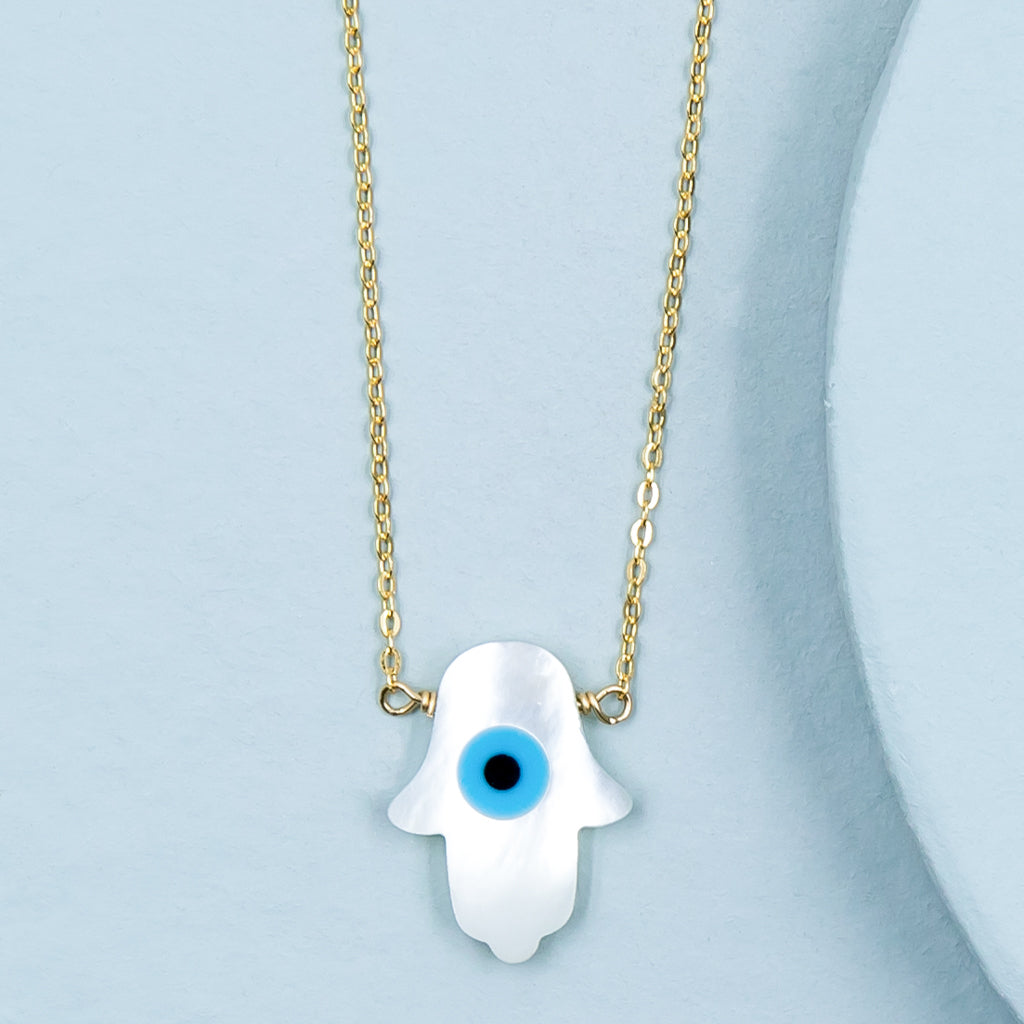 Mother of Pearl Hamsa with Eye Necklace $88.00