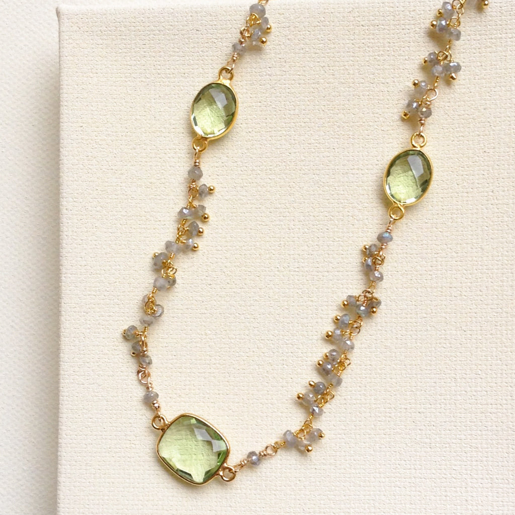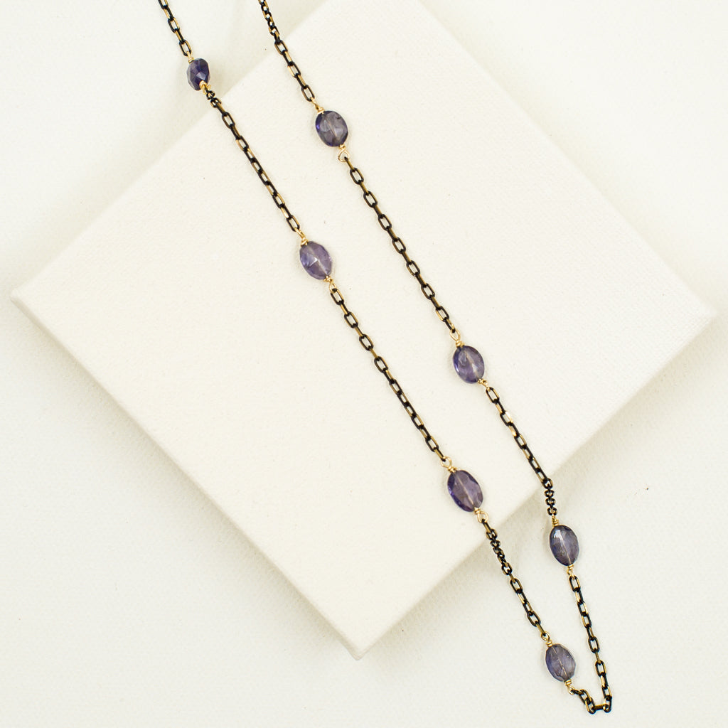 Scattered Iolite on Black & Gold Chain Necklace $134.00