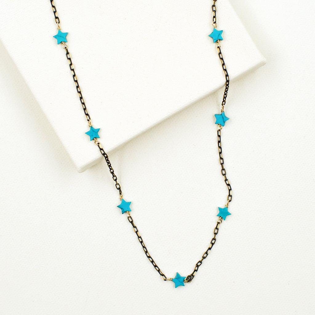 Turquoise Stars on Black & Gold Chain Necklace $118.00