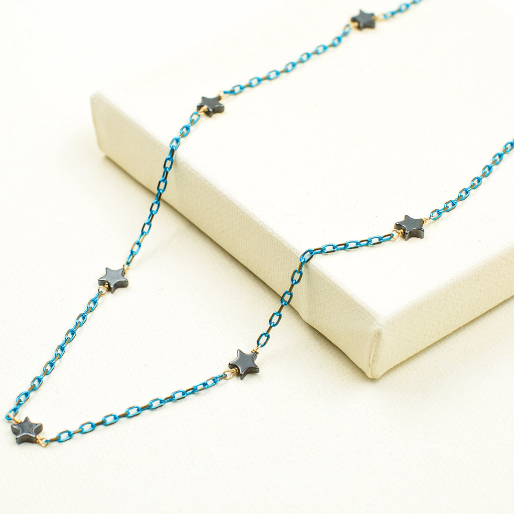 Hematite Stars on Turquoise & Gold Chain Necklace